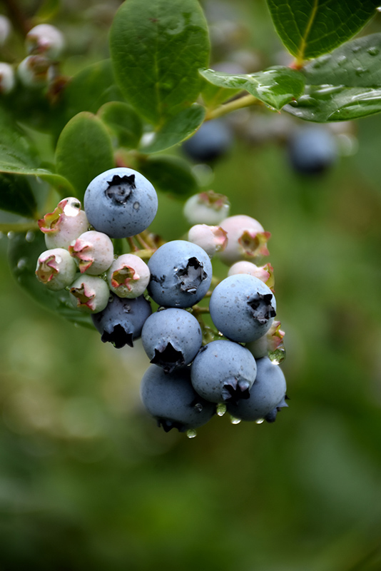 A common variety loved for its sweetly-flavored light blue fruit in summer and pretty bell-shaped flowers, bushy and often arching, a heavy and early producer; blueberries need highly acidic soil, perfect drainage and mulch, plant with peat moss