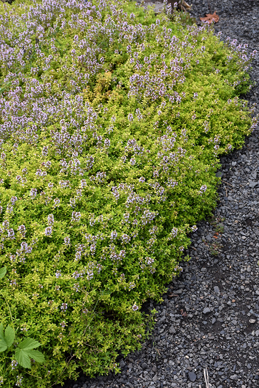 Aureus Lemon Thyme will grow to be only 6 inches tall at maturity extending to 8 inches tall with the flowers, with a spread of 14 inches. When grown in masses or used as a bedding plant, individual plants should be spaced approximately 12 inches apart. Its foliage tends to remain low and dense right to the ground. It grows at a fast rate, and under ideal conditions can be expected to live for approximately 10 years. As an evegreen perennial, this plant will typically keep its form and foliage year-round.