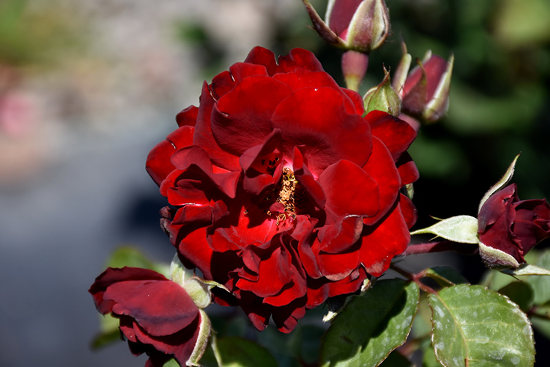 This low growing shrub rose presents flushes of large, deep velvety red, semi-double blooms all season; hardy and resistant to disease, ideal as a low flowering hedge; all roses need full sun and well-drained soil
