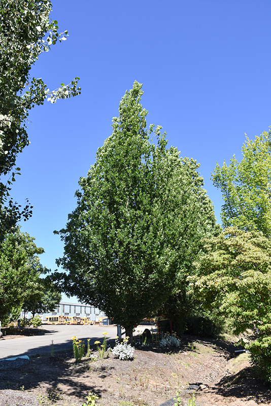 An impressive tall tree with a columnar, tightly fastigiate habit of growth and yellow to tawny yellow fall color; ideal for formal screening, or as a vertical accent in the landscape; glossy, dark green summer foliage is mildew resistant