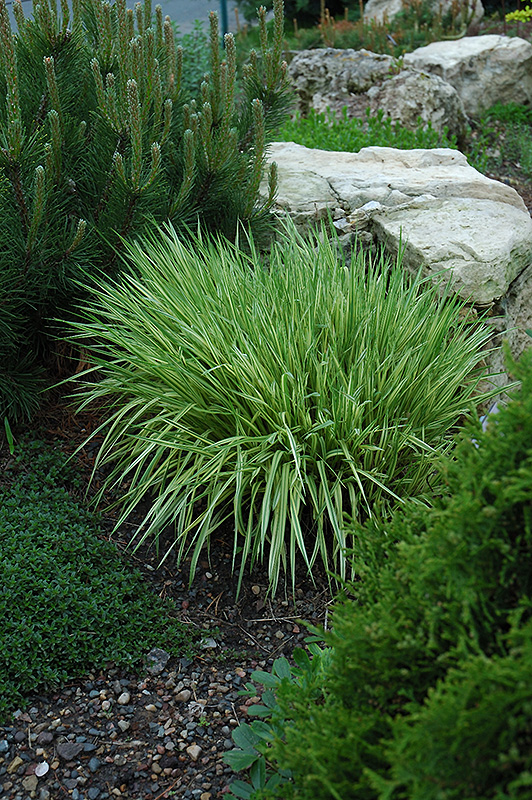 Variegated Moor Grass will grow to be about 12 inches tall at maturity extending to 24 inches tall with the flowers, with a spread of 24 inches. Its foliage tends to remain dense right to the ground, not requiring facer plants in front. It grows at a slow rate, and under ideal conditions can be expected to live for approximately 15 years. As an herbaceous perennial, this plant will usually die back to the crown each winter, and will regrow from the base each spring. Be careful not to disturb the crown in late winter when it may not be readily seen!