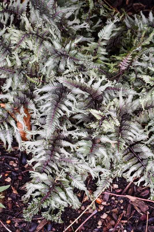 Crested Surf Japanese Painted Fern will grow to be about 22 inches tall at maturity, with a spread of 3 feet. Its foliage tends to remain dense right to the ground, not requiring facer plants in front. It grows at a slow rate, and under ideal conditions can be expected to live for approximately 15 years. As an herbaceous perennial, this plant will usually die back to the crown each winter, and will regrow from the base each spring. Be careful not to disturb the crown in late winter when it may not be readily seen!