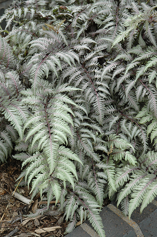 Pewter Lace Painted Fern is primarily valued in the garden for its cascading habit of growth. Its attractive ferny bipinnately compound leaves emerge burgundy in spring, turning grayish green in colour with showy silver variegation throughout the season. The burgundy stems are very colorful and add to the overall interest of the plant.