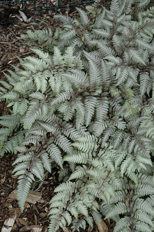 Silver Falls Painted Fern will grow to be about 18 inches tall at maturity, with a spread of 24 inches. Its foliage tends to remain dense right to the ground, not requiring facer plants in front. It grows at a slow rate, and under ideal conditions can be expected to live for approximately 15 years. As an herbaceous perennial, this plant will usually die back to the crown each winter, and will regrow from the base each spring. Be careful not to disturb the crown in late winter when it may not be readily seen!