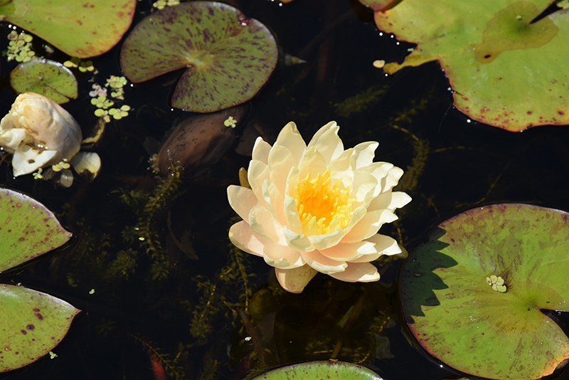 Carolina Sunset Hardy Water Lily will grow to be about 24 inches tall at maturity, with a spread of 4 feet. Its foliage tends to remain dense right to the water, not requiring facer plants in front. It grows at a fast rate, and under ideal conditions can be expected to live for approximately 10 years. As an evegreen perennial, this plant will typically keep its form and foliage year-round.