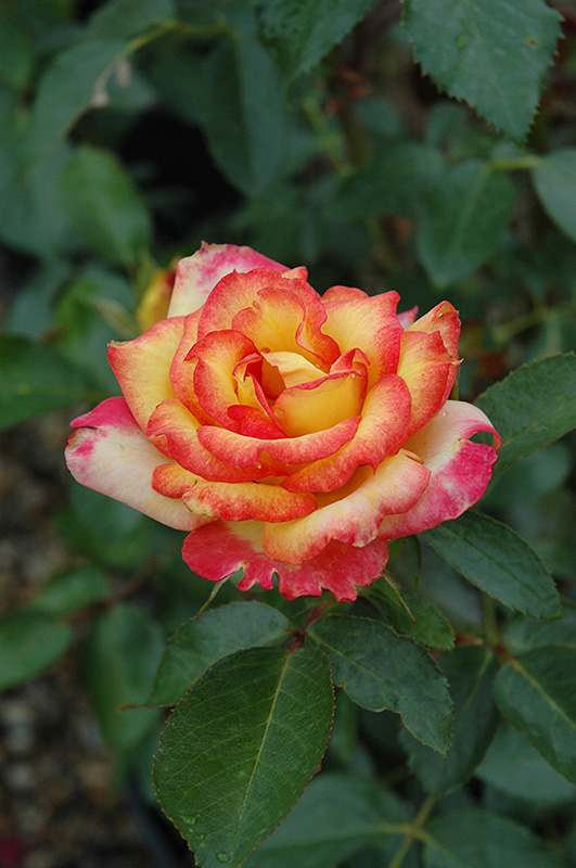 Mixed shades of bright yellow, orange and red finishing nicely into light yellow and coral pink describe the gorgeous blooms of this incredible disease resistant hybrid; sunny blooms begin early in spring and continue throughout the season