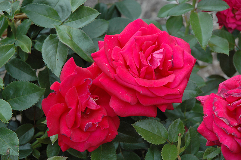 Deep passionate color will capture your heart with these beautifully formed blooms of deep plum rose; saturated in a rich sweet fragrance and framed with exceptional glossy floliage, this plant also exhibits high disease resistance