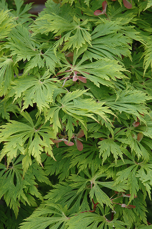 Cutleaf Fullmoon Maple is primarily valued in the landscape for its ornamental globe-shaped form. It has rich green deciduous foliage. The deeply cut lobed palmate leaves turn an outstanding crimson in the fall.