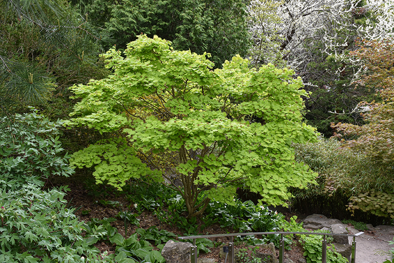 Golden Full Moon Maple will grow to be about 20 feet tall at maturity, with a spread of 20 feet. It has a low canopy with a typical clearance of 2 feet from the ground, and is suitable for planting under power lines. It grows at a slow rate, and under ideal conditions can be expected to live for 60 years or more.